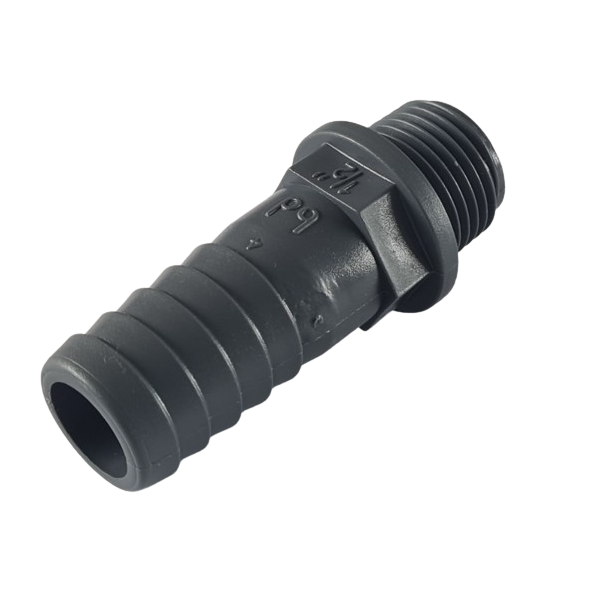 1/2” BSP Male to 3/4” (20mm) Male Grey Barbed Hosetail